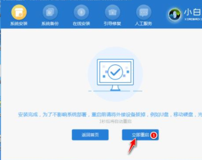 4.在pe系統中,小白裝機工具會自動安裝系統,安裝完成后點擊立即重啟即可。