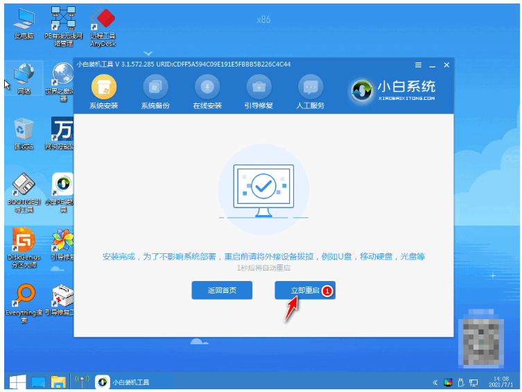 2、耐心等待,裝機軟件下載完成之后,點擊立即重啟電腦。