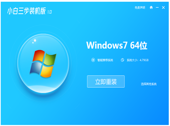 1、在電腦上下載安裝小白三步裝機版工具,選擇本次需要重裝的系統,點擊立即重裝。