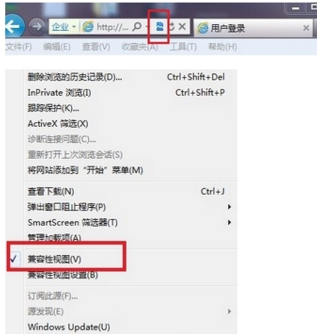 4、重新打開設置之后的網頁,會看到地址欄后面有一個像破碎紙片一樣的圖標,說明兼容模式已經設置成功,在工具的下拉菜單也同樣可以看到在兼容模式前面也就打鉤,說明網頁的兼容模式已經設置成功。