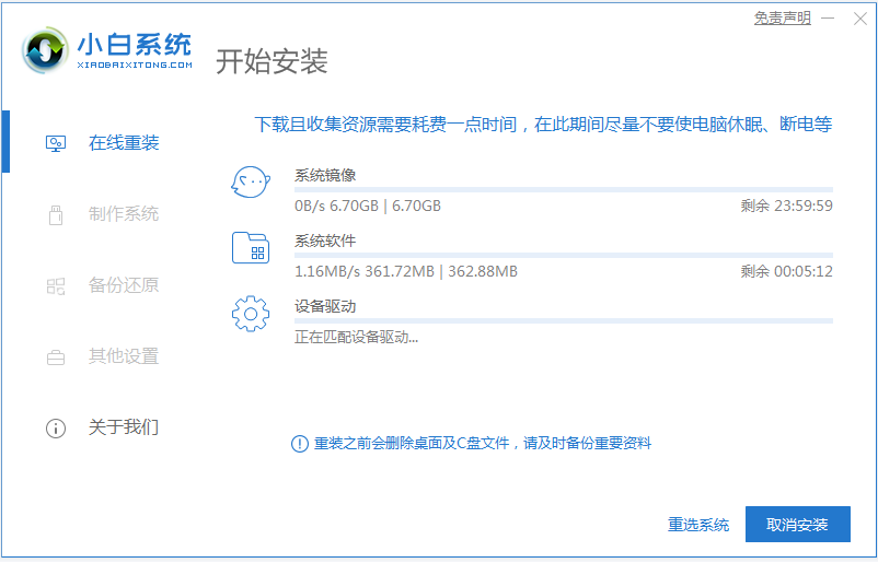 2、等待軟件自動下載系統鏡像文件資料等,無需操作。