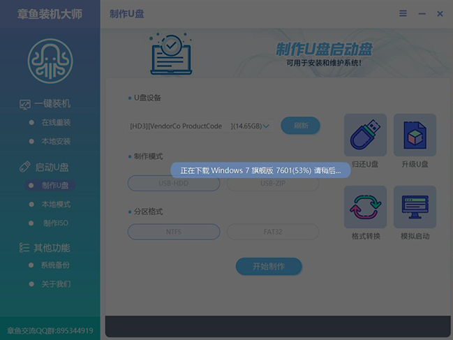 方法二:借助章魚裝機大師工具U盤重裝win7系統