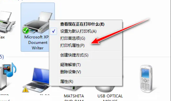 5、選擇共享的打印機,然后點擊右鍵選擇【打印機屬性】。