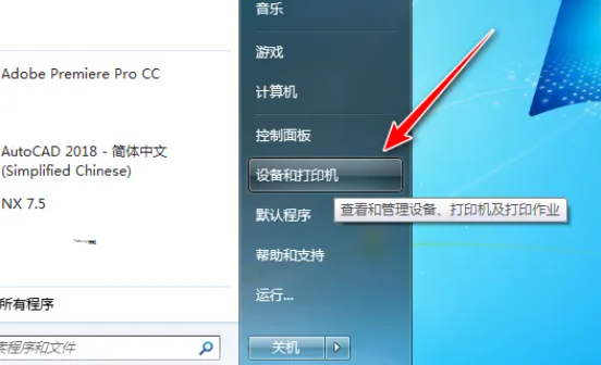 4、然后我們點擊開始,接著選擇【設備和打印機】命令。