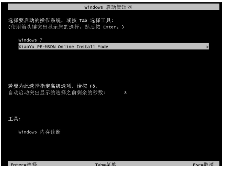 5、當我們的電腦進入到如以下界面,選擇第二項按回車鍵進入到xiaoyu-pe系統。
