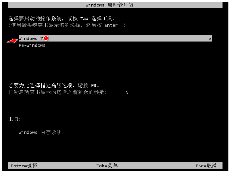 2、第一次重啟選擇第二個選項,第二次重啟選擇windows7系統即可安裝完成。