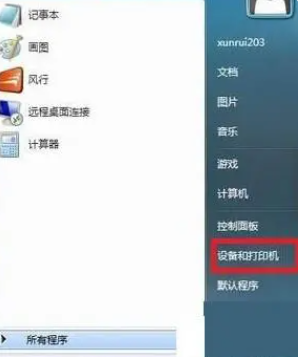 1、點擊開始菜單,選擇設備和打印機,如下圖所示: