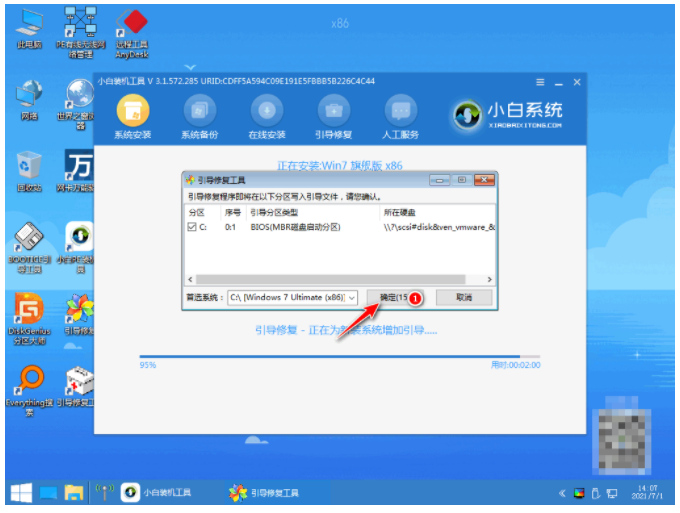 7.進入引導修復,耐心等待之后,鼠標點擊確定。