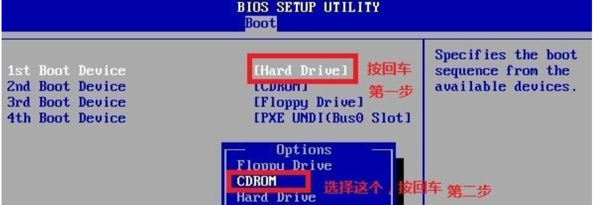 5、把第一啟動項的 1st Boot Device 的【Hard Deice】改成CDROM(有些是什么DVD)。