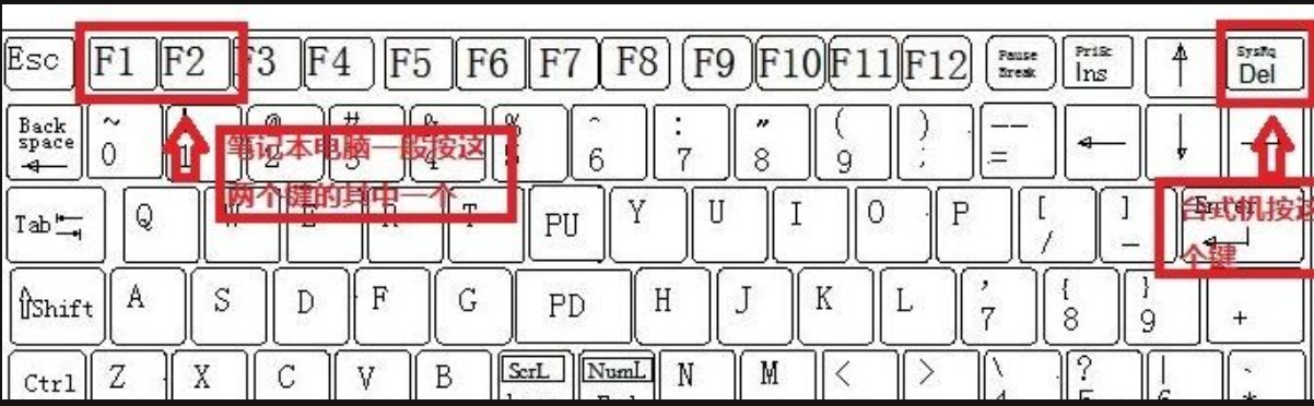 3、重啟電腦,臺式機我們按DEL鍵,如果是筆記本一般(按F1或F2或F11)等。