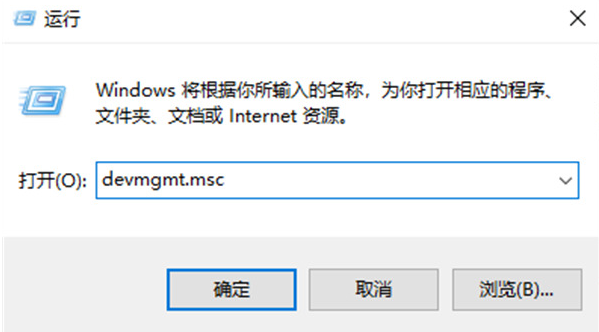 1、按住Windows + R鍵打開運行對話框,鍵入devmgmt.msc并單擊“確定”,打開“設備管理器”。