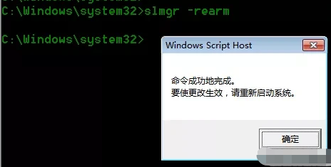 3、在cmd中執行如下命令:slmgr -rearm即可再次激活。激活完成后重啟系統會看到激活時間又延長了。