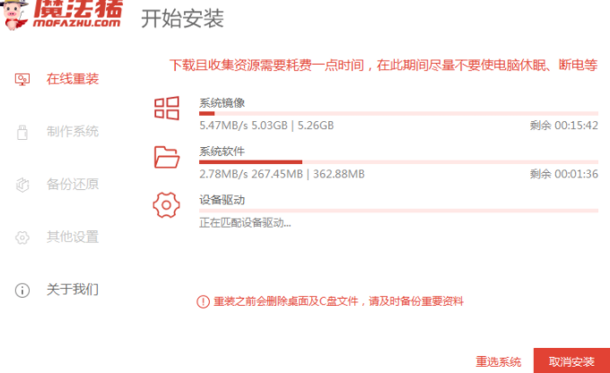 2、軟件會自動下載資源,但是我們也要注意重裝系統是會清空數據,所以我們需要提前備份重要的數據。