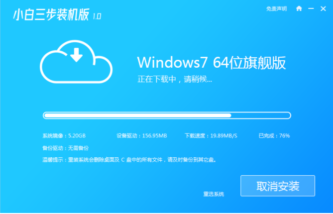 2、耐心等待裝機軟件將會自動開始下載win7系統軟件以及驅動程序等等。