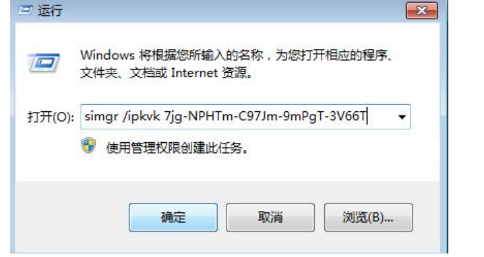 2、復制粘到命令提示符(管理員)中,按一下粘貼:simgr /ipkvk 7jg-NPHTm-C97Jm-9mPgT-3V66T。