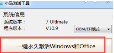 3、然后就會進入到小馬激活工具的頁面,我們點擊下面的一鍵永久激活windows和office。