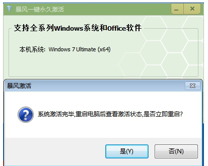 4、提示系統激活完畢之后,重啟電腦后即可查看激活狀態。