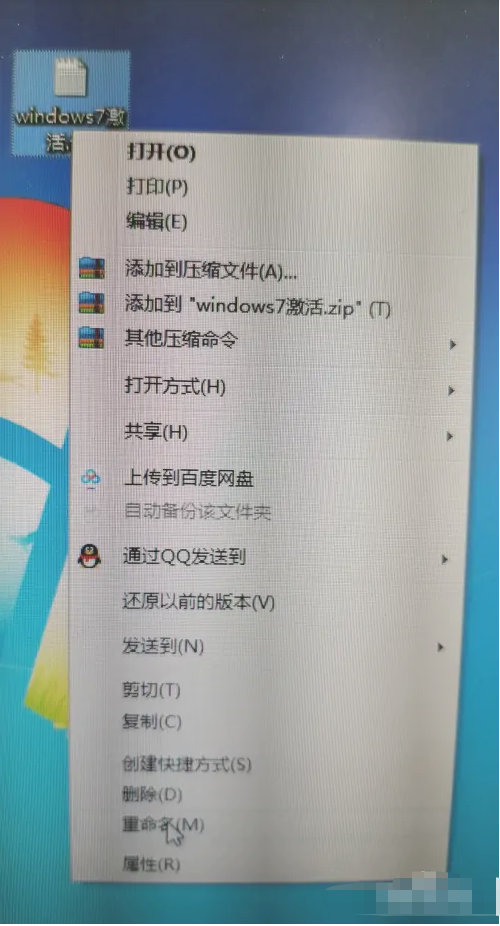 3、鼠標選中windows7激活文本文檔后,點擊鼠標右鍵,選擇重命名。