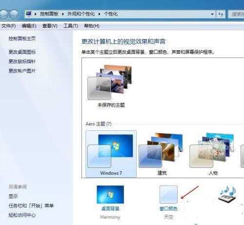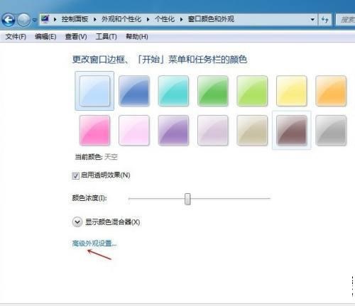 改變壁紙之后,再修改窗口的顏色,點擊 窗口顏色,打開窗口顏色,然后點擊“高級外觀設置”。