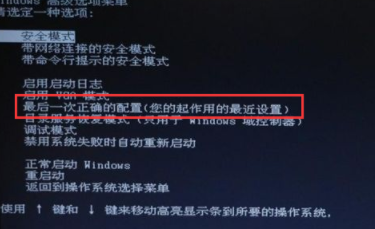 如果是驅動沖突導致的電腦黑屏,那么我們在開機的時候不斷點擊F8鍵,進入系統操作,點擊最后一次正確配置來解決黑屏問題即可。