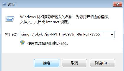2、復制粘到命令提示符(管理員)中,按一下粘貼:simgr /ipkvk 7jg-NPHTm-C97Jm-9mPgT-3V66T(此密鑰不行的話,就換另一個密鑰)。