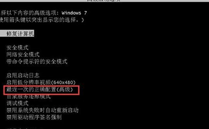2.但是這次我們選擇最近一次的正確配置,然后按照系統提示來就可以了。