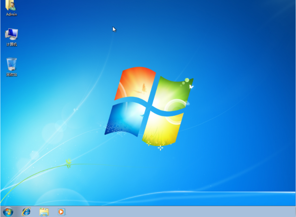 8、不用操作,耐心等待進到到win7系統桌面上即表明安裝取得成功。