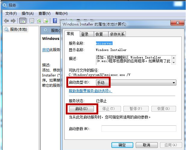 5.在屬性中選擇手動的啟動類型,然后點擊啟動。