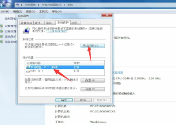 4、來到系統屬性窗口,點擊系統盤,選擇系統還原。