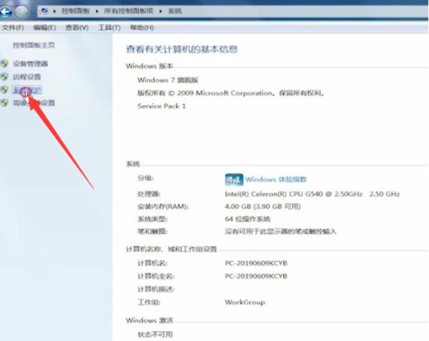 3、繼續點擊系統保護。
