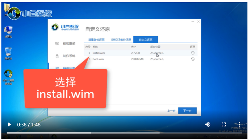 5、選擇install.wim安裝,點擊下一步。