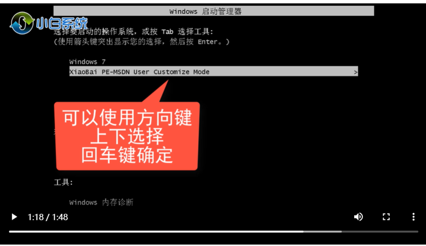 10、再次進入啟動管理器,選擇windows7,回車。