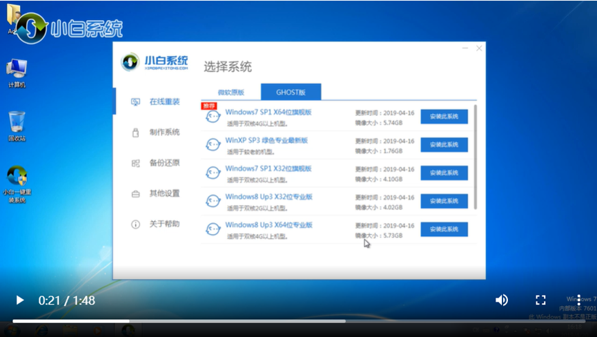 3、打開小白軟件,點擊GHOST選項卡,找到要安裝的系統版本,點擊安裝此系統。