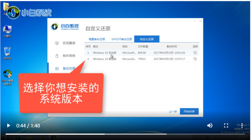 6、選擇要安裝的系統版本,點擊開始安裝。