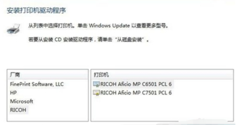 5、選擇從磁盤安裝,找到打印機驅動文件點擊確定,進行安裝即可。