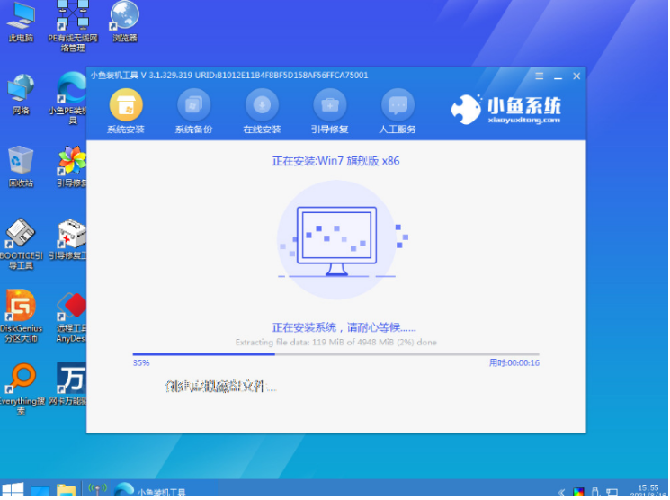 6、在pe系統內,裝機軟件將會自動開始安裝win7系統。