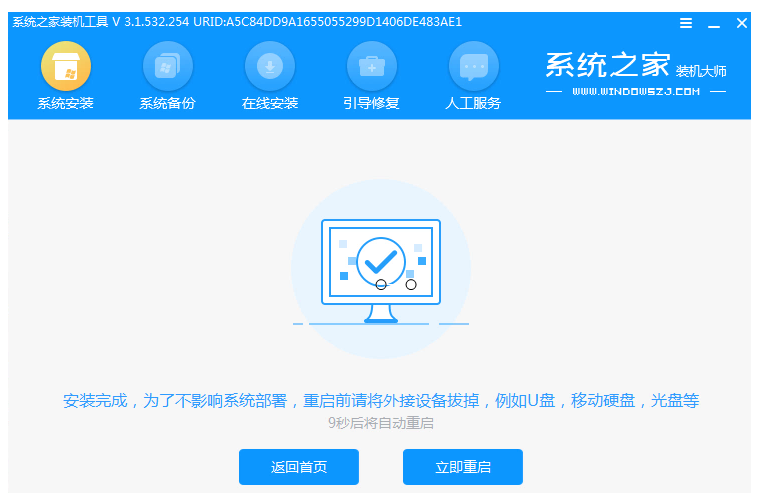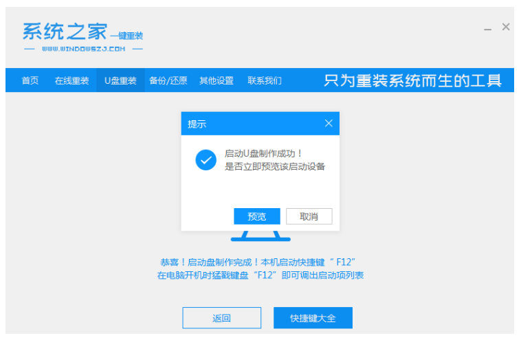 3、裝機軟件提示啟動U盤制作成功后,點擊立即重啟。