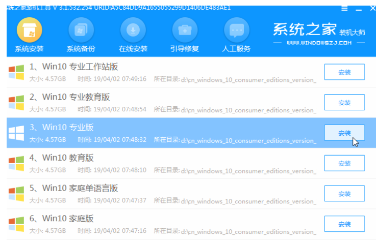 5、進入pe系統界面之后,系統之家裝機工具將會自動安裝win10系統。