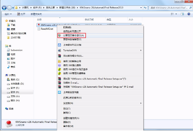 1、先下載KMS win7激活軟件,下載解壓之后,以管理員身份運行它