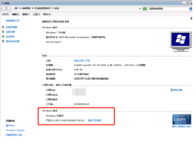 4、驗證windows系統是否成功被激活,打開“計算機”-“屬性”,查看當前系統是否被激活。如下圖顯示,成功被激活。