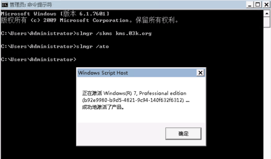 執行該指令后,彈出提示框提示“xxx成功地激活了產品”。