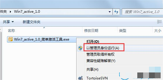 選擇解壓縮的激活工具,右鍵單擊并選擇“以管理員身份運行”以打開;