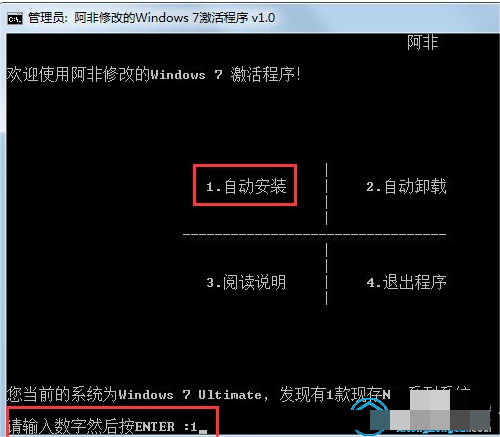 進入激活頁面,輸入數字“ 1”,然后按回車鍵r;