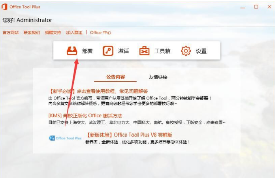 1、首先我們要下載Office Tool這款工具打開,然后選擇部署,如果打不開就需要自行查找并下載.Net Framework 4.6.2微軟官方版(離線安裝包) (如果是win7的話,Win10不用安裝)。