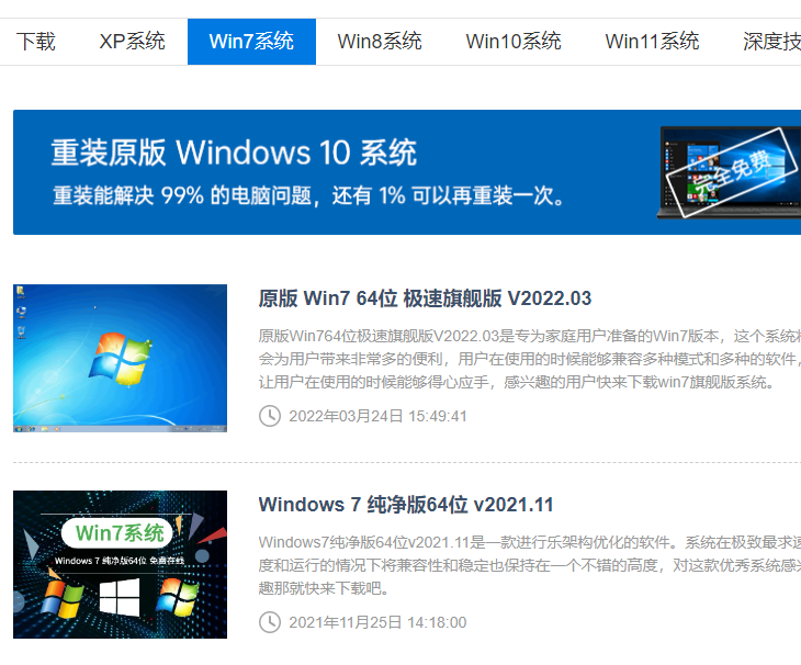 2、然后點擊win7系統,即可找到各類型的win7系統下載,我們找到需要的原版win7家庭版系統下載使用即可。
