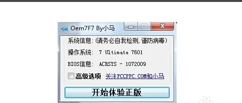 軟件版本:Windows Loader V2.5激活工具,小馬Oem7F7
