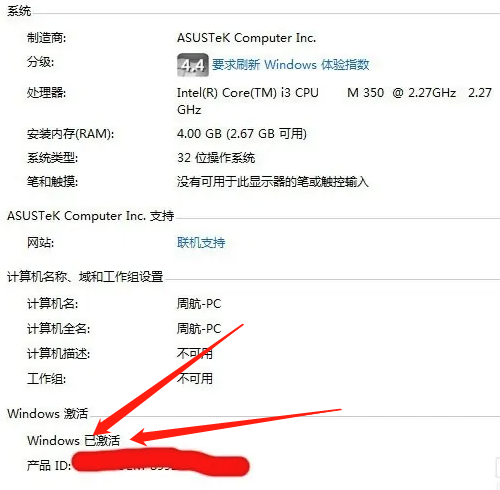 4、右擊“我的計算機”查看屬性,就可以看到已激活的ID等信息。