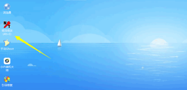 3、進入小白pe系統界面后,雙擊打開桌面上的“密碼修復”。