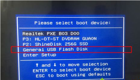 1、在需要修改密碼的win7電腦上插入pe啟動盤,啟動電腦后不停按F12、F11、Esc等快捷鍵,在彈出的啟動菜單選擇框中選擇識別到的usb啟動項,比如General USB Flash Disk,按回車進入;