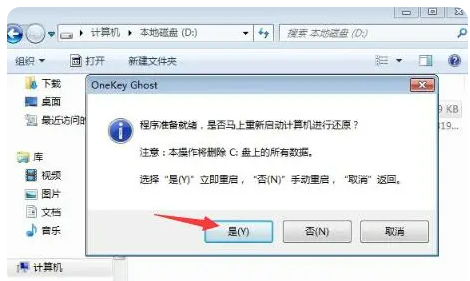 4.彈出提示框,點擊,立即重啟計算機還原;